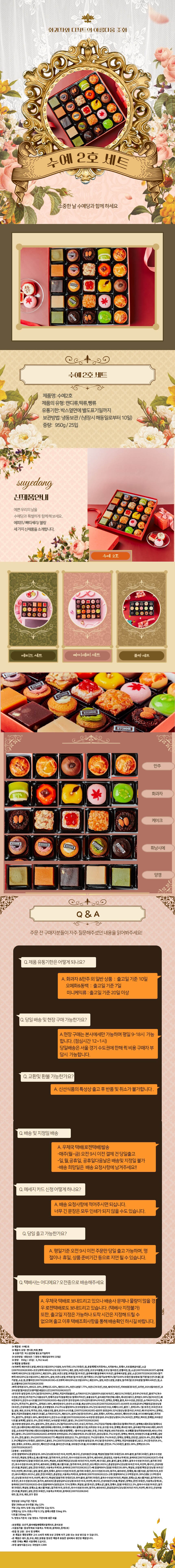 배송 과정에서 발생할 수 있는 충격을 방지하기 위해 특수 제작된 완충재와 보냉 박스를 사용하며 명절 기간 지정일 배송을 통해 정확한 납기를 보장합니다.