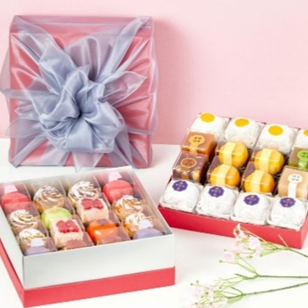 오메기떡과 퓨전 케이크가 어우러진 2단 구성의 트렌디한 명절 사은품입니다. 전통과 현대의 맛이 조화롭게 공존하여 젊은 감각의 기업체 기념품으로 각광받고 있습니다.
