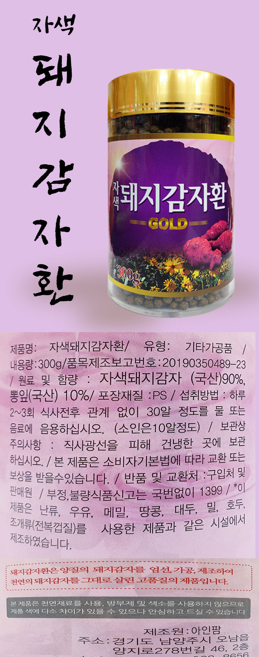 국내산 자색 돼지감자의 영양을 환으로 빚어 간편하게 건강을 챙기세요