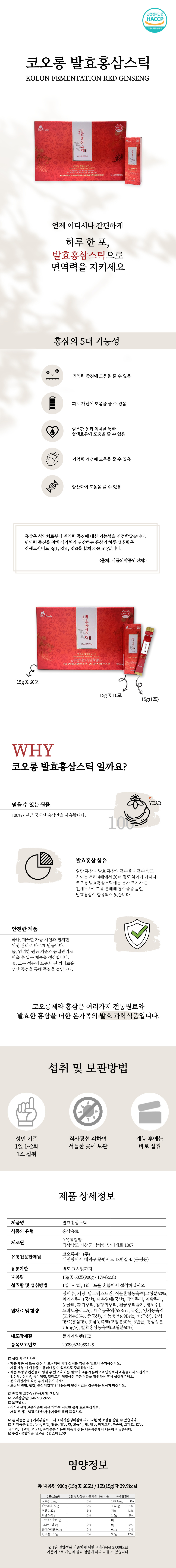 코오롱제약의 엄격한 품질 기준을 통과한 6년근 발효 홍삼 스틱입니다. 발효 공법을 적용해 체내 흡수를 돕고 60포 구성으로 실속까지 챙겼습니다.