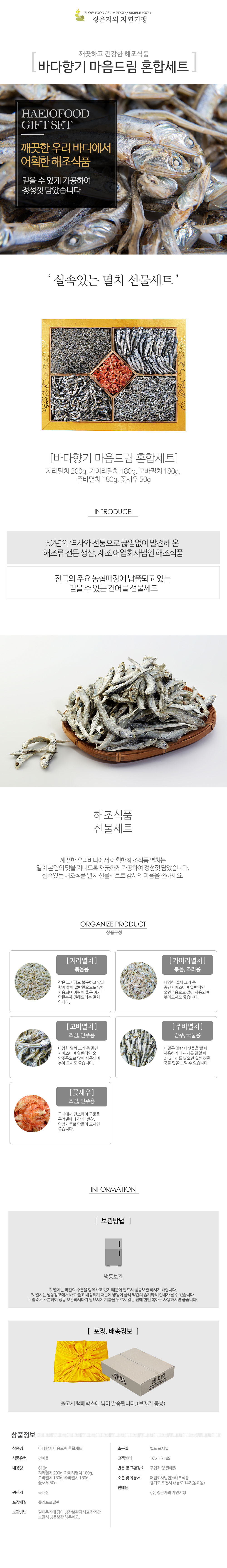 바다향기 마음드림 혼합세트는 꽃새우와 남해안 4종 멸치를 함께 구성한 프리미엄 혼합세트로, 명절선물·가족선물·VIP고객선물에 적합한 선물형 건어물세트입니다.
