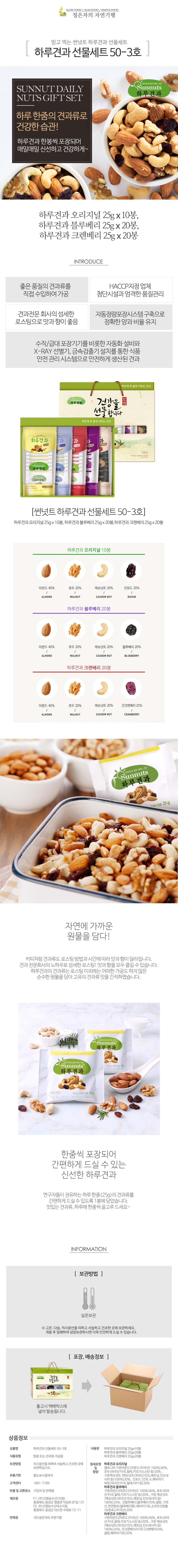 썬넛트 하루견과 선물세트 50입 3호 5가지 프리미엄 구성