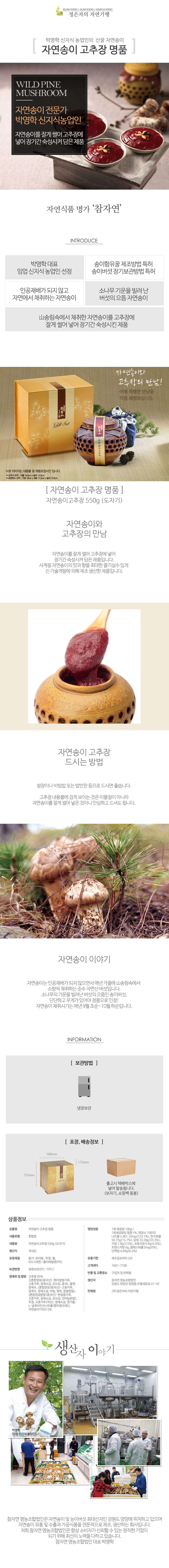 박영학 신지식농업인의 특허받은 기술로 담은 참자연 자연송이 고추장 명품 550g 도자기 포장