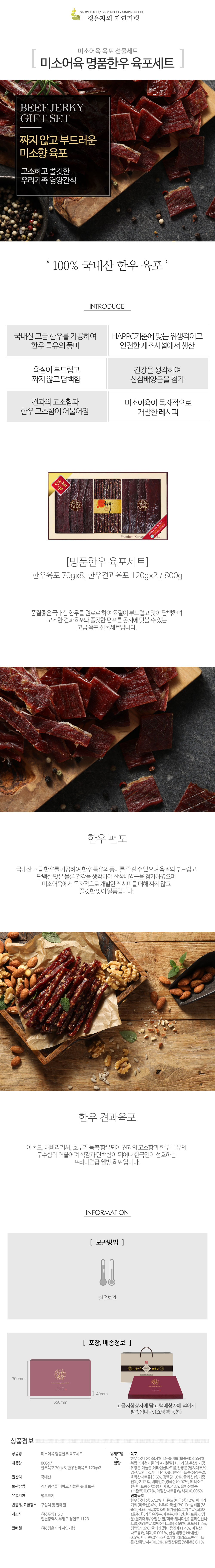 미소어육 명품한우 육포세트는 한우육포 70g 8개와 한우 견과육포를 함께 담은 15만원 이상 프리미엄 선물세트로 백화점 퀄리티를 그대로 옮긴 구성을 자랑합니다. 지함케이스와 쇼핑백, 택배박스까지 갖추어 VIP·거래처·중요 고객 명절선물로 추천되며, 대량구매시 맞춤형 구성과 인사장·스티커 작업, 예약 출고까지 가능합니다.