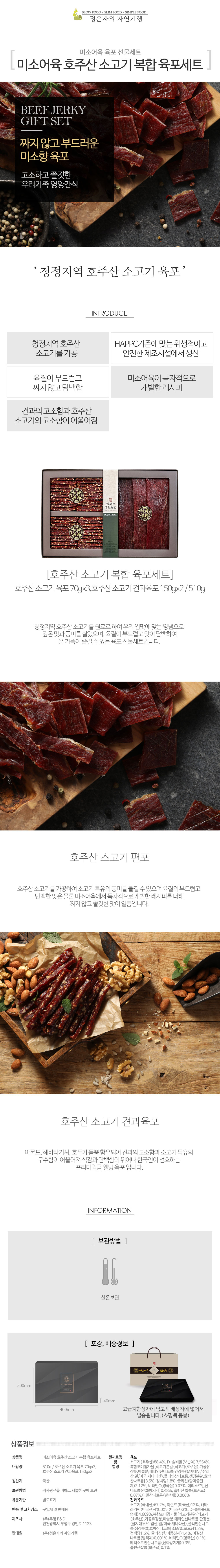 미소어육 호주산 소고기 복합 육포세트는 호주산 소고기 육포와 견과육포를 함께 담은 5만원대 가성비 선물세트로 실속과 예우를 동시에 챙기기 좋은 구성입니다. 지함케이스·쇼핑백·택배박스를 기본 제공하여 기업·단체·복지용 명절선물로 활용도가 높고, 대량구매시 맞춤형 상품구성·인사장·스티커 작업이 가능합니다.