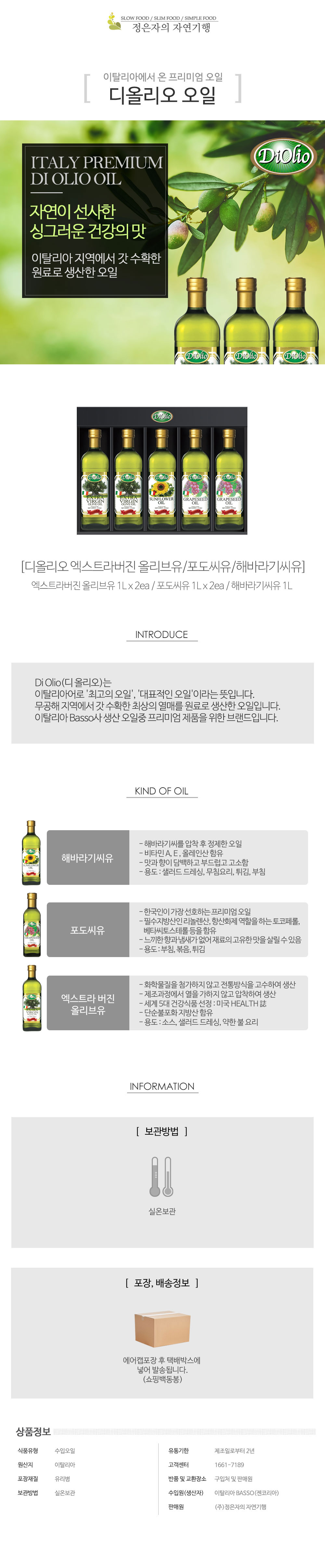 디올리오 1L 5구 종합 선물 올리브2 포도씨2 해바라기1