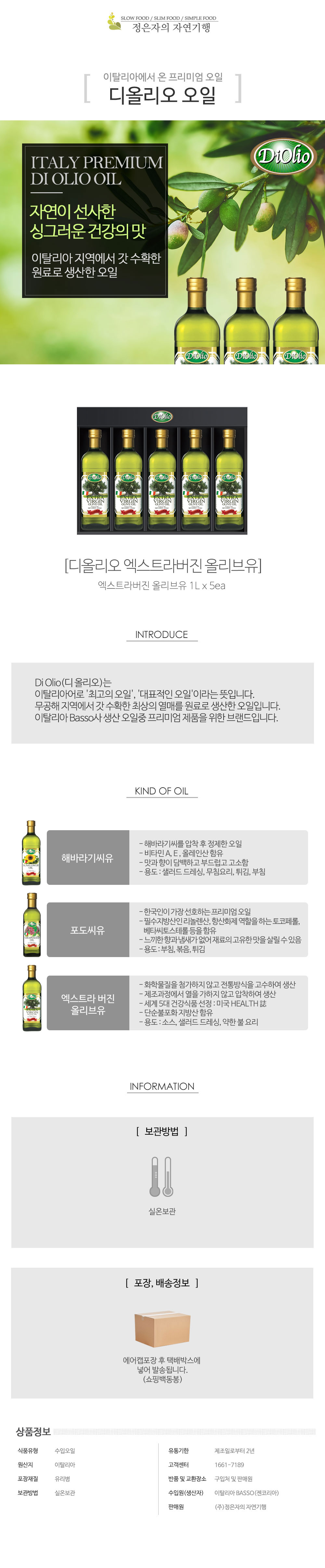 1L 엑스트라 버진 올리브유 5병의 최고급 에디션입니다. 장인의 자부심이 담긴 디올리오 최상위 라인업입니다.