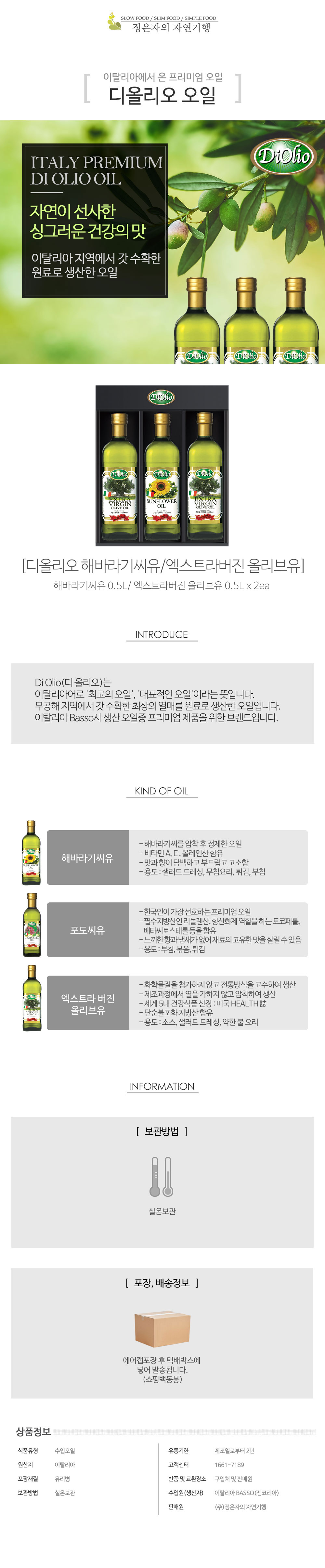 디올리오 0.5L 3구 VIP 세트 해바라기씨유1 올리브유2