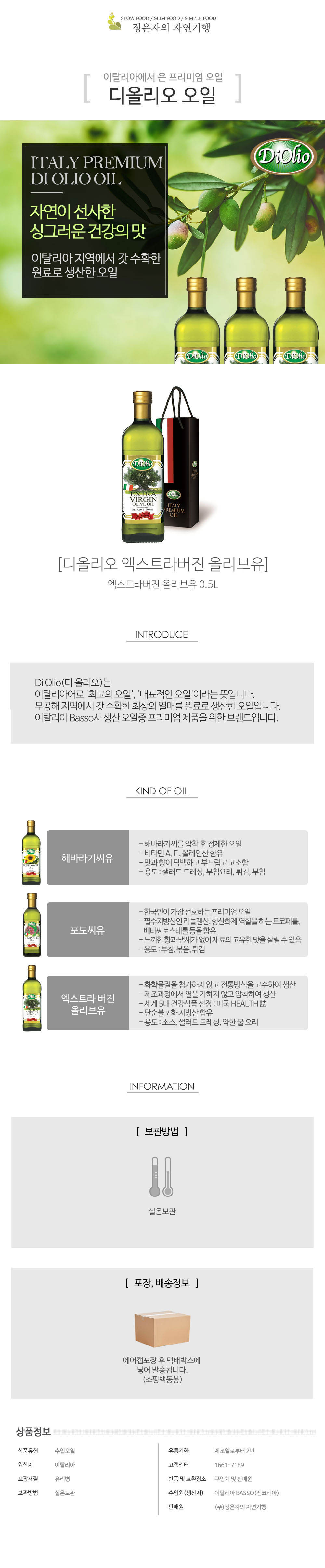 디올리오 엑스트라버진 올리브유 0.5L 지중해 프리미엄