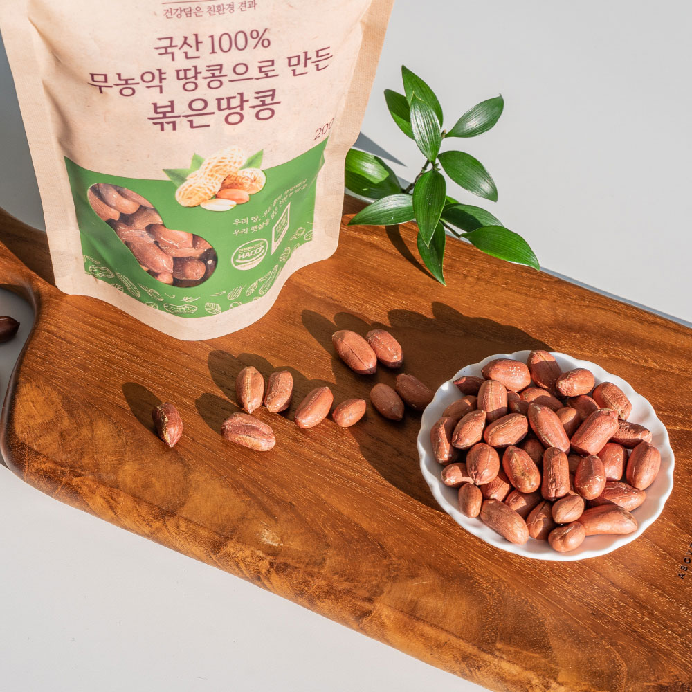 무농약 볶은땅콩은 화천의 맑은 공기 속에서 자란 땅콩을 담았습니다. 탕비실 비치용으로 인기가 높으며 무농약 인증으로 안심하고 즐길 수 있는 직장인 주전부리입니다.