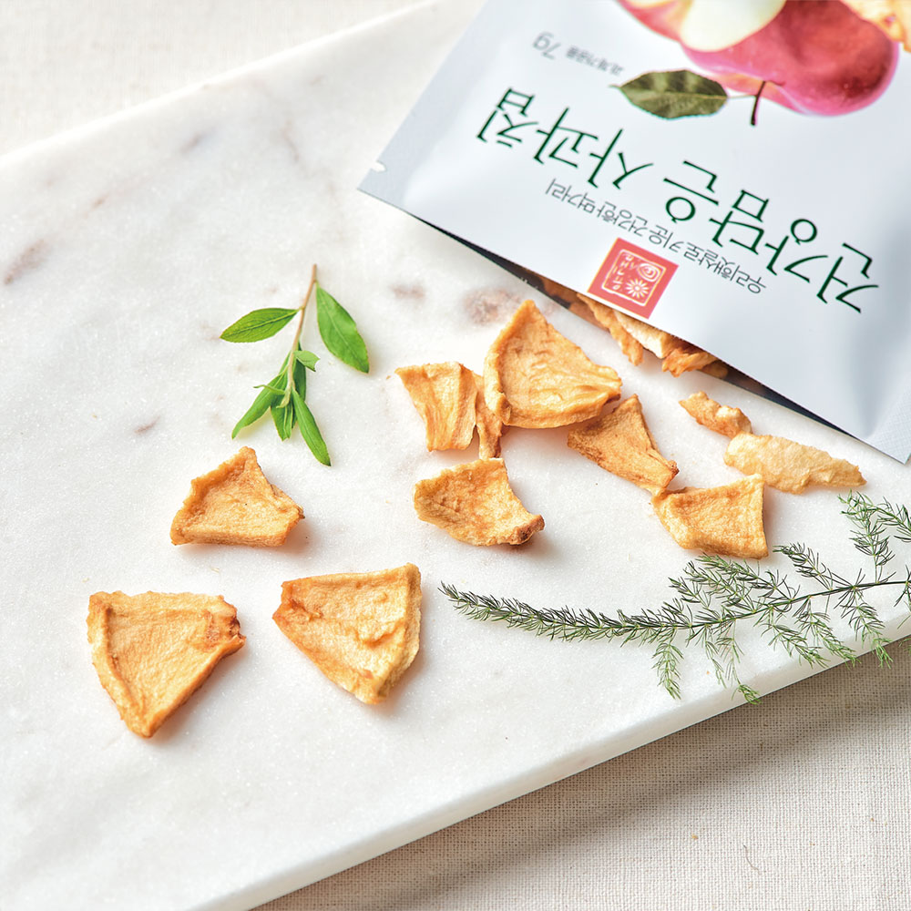 건강담은 사과칩은 충주 사과 100%를 그대로 건조하여 비타민이 풍부합니다. 사무실에서 상큼하게 즐기는 무첨가 리얼 과일칩으로 임직원 복지 만족도가 높습니다.