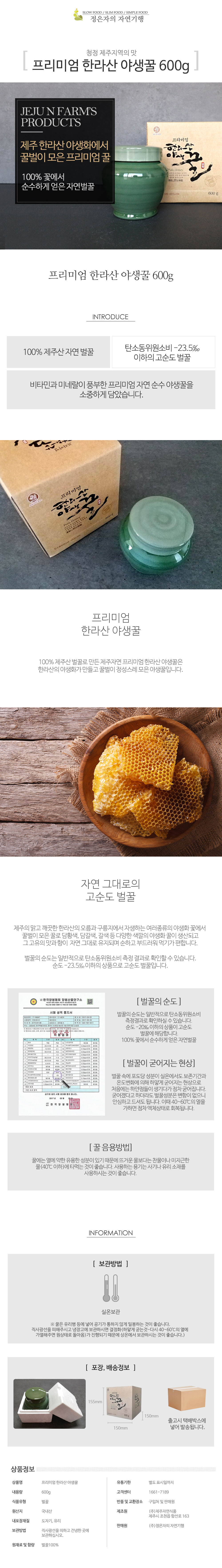 프리미엄 제주 한라산 야생 천연꿀 600g